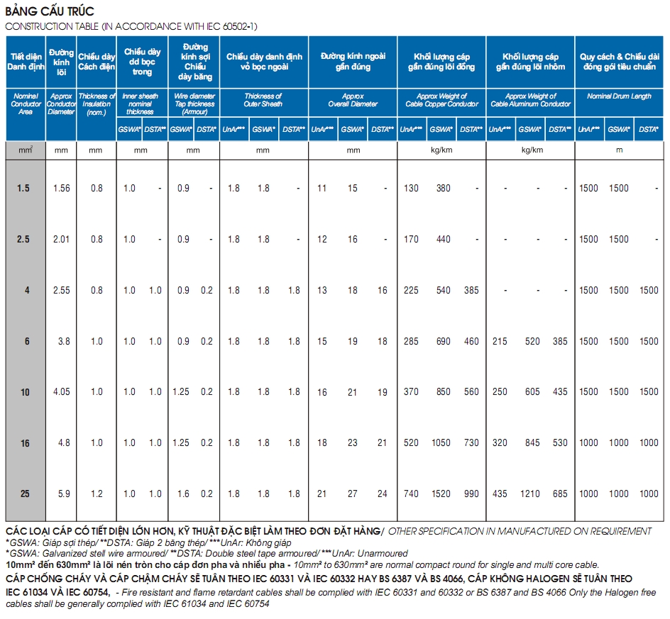 Cáp 2 lõi cách điện Pvc 0,6/1(1,2)kV