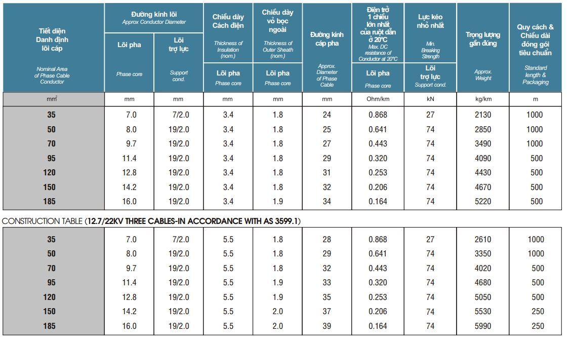 Cáp trung thế vặn xoắn trên không bọc XLPE