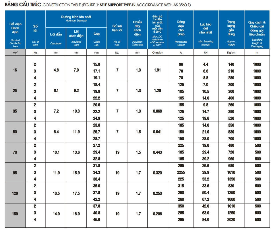 Cáp vặn xoắn 0,6/1(1,2)kV - abc