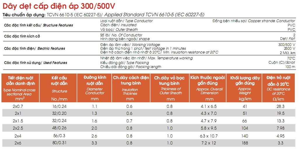 Ví dụ: 300/500V CVV-O-R5B 2x4mm2 LiOA Electric