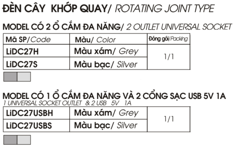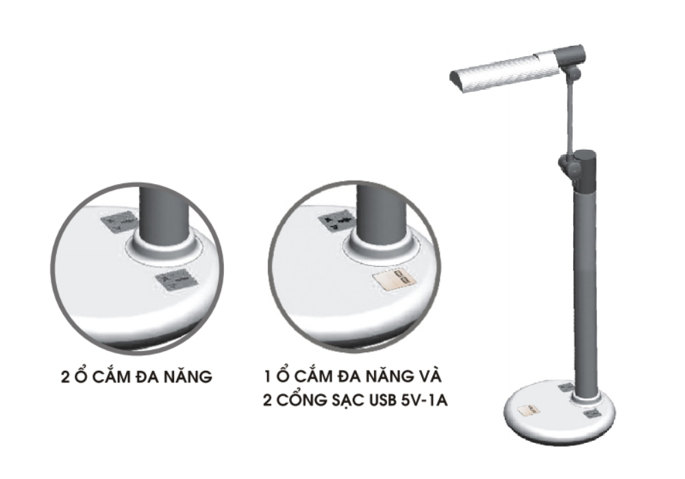 • Có 1 ổ cắm đa năng và cổng sạc USB 5V 1A