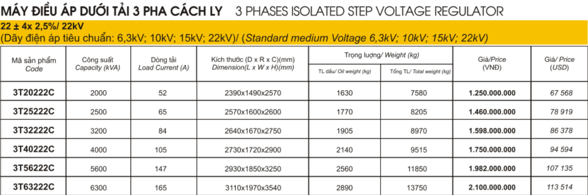 Máy điều áp dưới tải 3 pha cách ly 22+- 4x2,5%/22kV