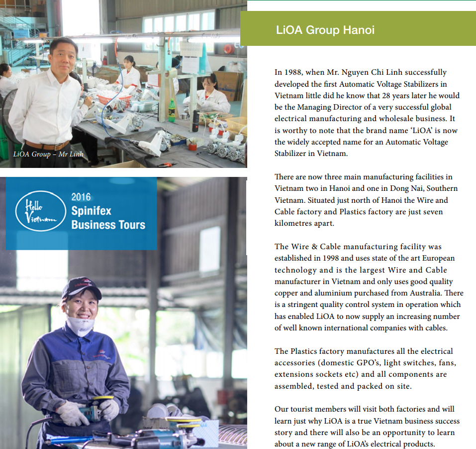 Trong hành trình tham quan và làm việc tại Việt Nam của các doanh nghiệp Úc, LiOA được lựa chọn với 2 điểm dừng chân là Nhà máy dây và cáp điện LiOA tại Hưng Yên và Nhà máy thiết bị điện tại Bắc Ninh.