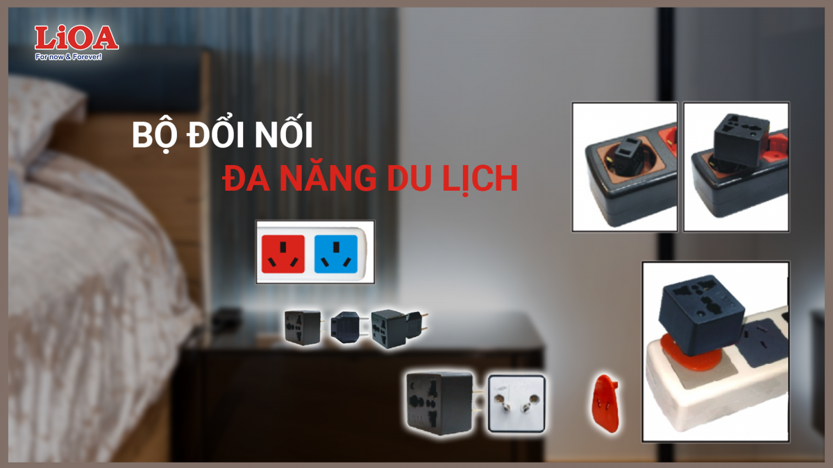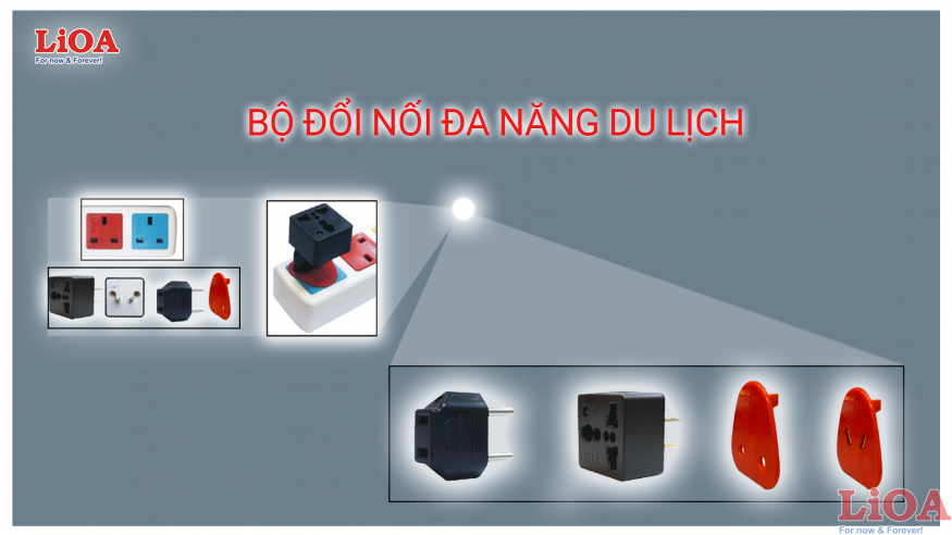 Bộ đổi nối đa năng du lịch thương hiệu LiOA gồm có các sản phẩm phích cắm nối đổi tròn ra dẹt, ổ nối đa năng chân dẹt có thể xoay chéo, nắp che mặt kiểu Anh, nắp che mặt kiểu Úc, Trung Quốc. Bộ sản phẩm giúp người dùng chuyển đổi từ các dạng chân cắm 3 chấu phổ biến ở các nước khác sang chân cắm 2 chấu thông dụng tại Việt Nam, hoặc ngược lại. Bộ sản phẩm cũng rất tiện dụng khi sử dụng trong gia đình, văn phòng cũng như khi đi du lịch.