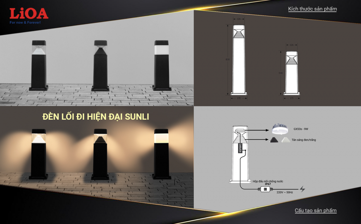 Đến với LiOA, các sản phẩm đèn ngoài trời, sân vườn, lối đi là cả một bộ sưu tập đa dạng về kiểu dáng, chức năng và tính ứng dụng. Điển hình dòng sản phẩm đèn lối đi phong cách cổ điển MAGG và hiện đại SUNLI, ARMYLI giúp tăng thêm độ an toàn và vẻ đẹp cho lối vào, lối đi và còn nhiều lợi ích hơn thế nữa. Những sản phẩm đèn lối đi độc đáo, hấp dẫn của LiOA là sự lựa chọn phổ biến của các nhà thiết kế cảnh quan, nhằm tạo ra một khu vườn hoặc không gian sống ngoài trời độc đáo và tinh tế cùng với đó là bổ sung thêm một lớp an ninh và an toàn cho gia chủ vào ban đêm.