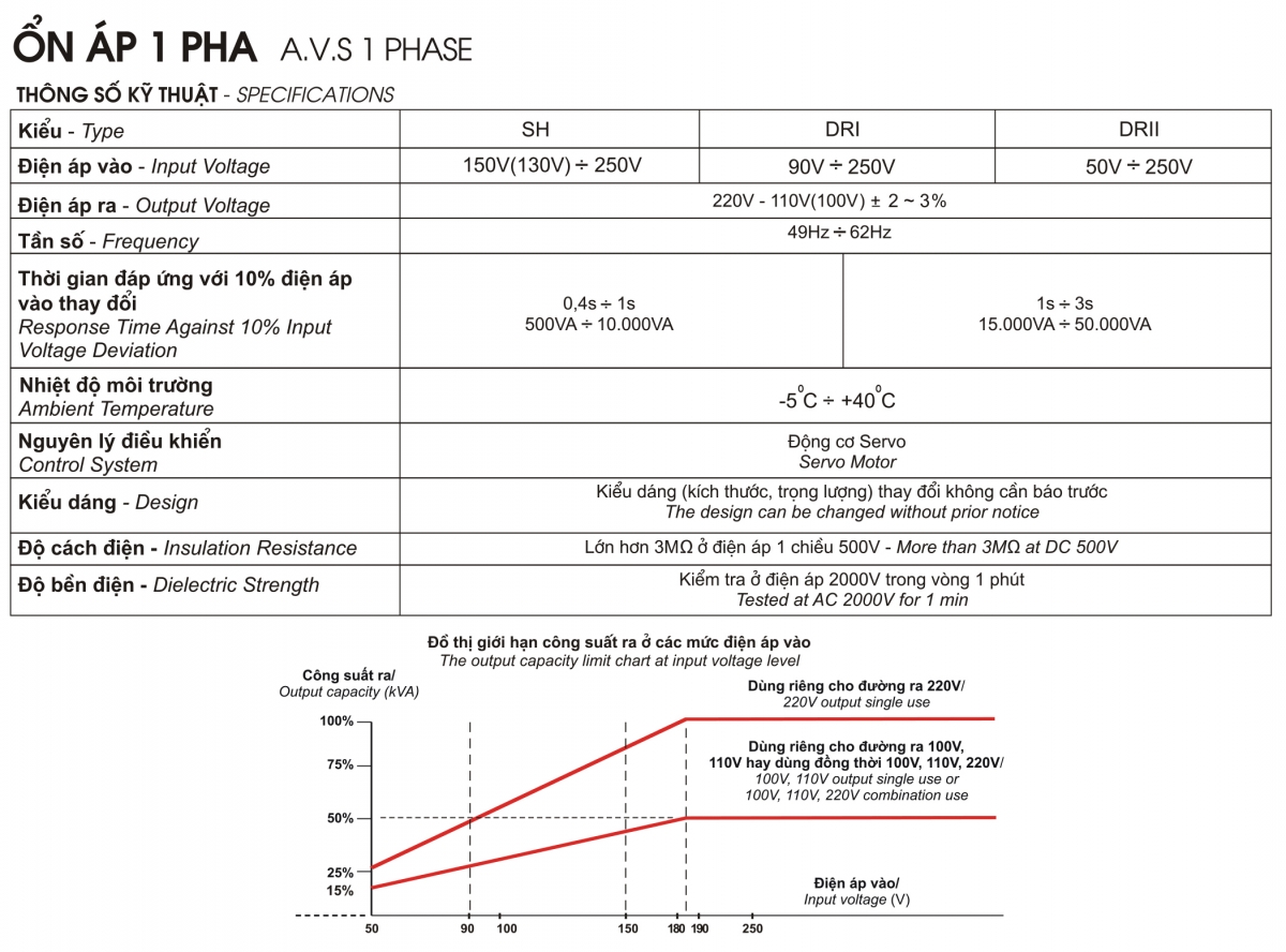 + Dòng SH có dải điện áp vào từ 150V-250V~