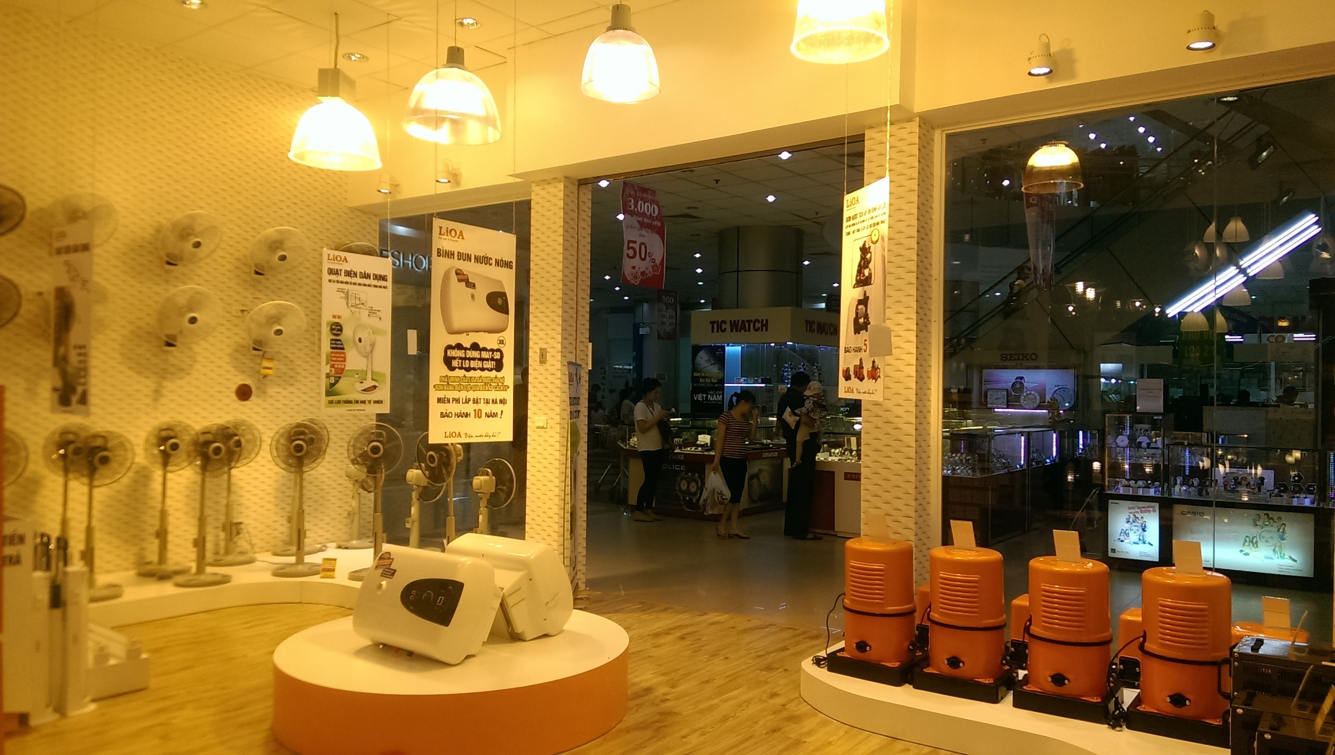 Khu trưng bày quạt, máy bơm, bình nước nóng