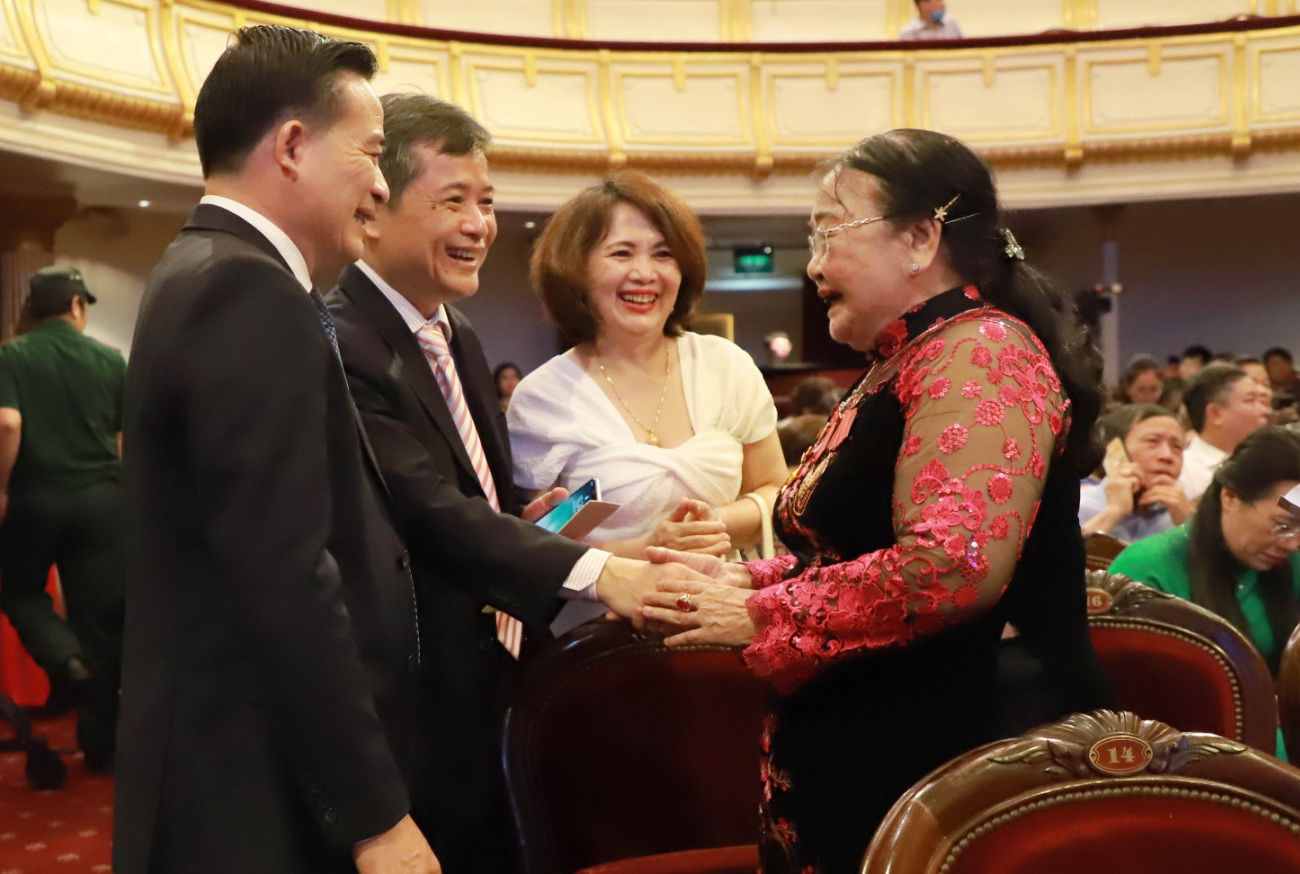 Cụ Lương Thị Điểm và Phó TGĐ Nguyễn Tiến Công giao lưu cùng các vị khách mời khác.