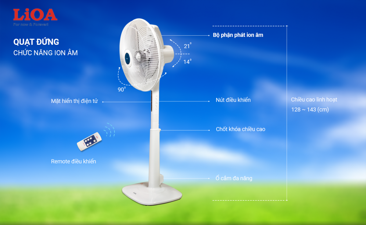 Bên cạnh những ưu điểm trên, sản phẩm quạt đứng chức năng ion âm cao cấp của LiOA còn nổi bật với các đặc điểm: